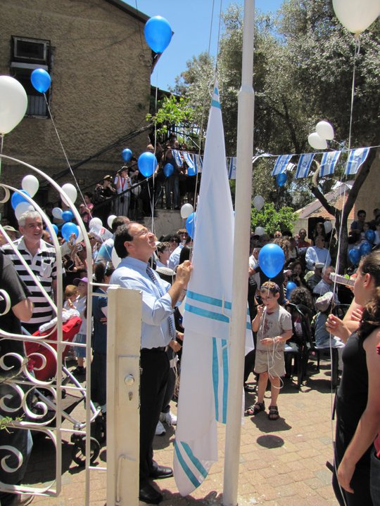 בהמשך היום, צפו המבקרים בעניין רב ובהתרגשות בחשיפתו של שחזור דגל ישראל הראשון בעולם אשר עוצב ונוצר על ידי ישראל בלקינד ופאני מאירוביץ' והונף בעיר ראשון לציון בשנת 1885, לראשונה בעולם. שחקנים שגילמו את השניים, סיפרו על הדגל שיצרו ועל חגיגת יום ההולדת השלישי של ראשון-לציון, שלכבודה הונף הדגל. מאוחר יותר התכנסו המבקרים אל רחבת הדגל ולקול תרועת חצוצרה הניף ראש העירייה, מר דב צור, את שיחזור הדגל הראשון, תוך שהילדים בקהל הפריחו המוני בלונים בצבעי כחול ולבן.