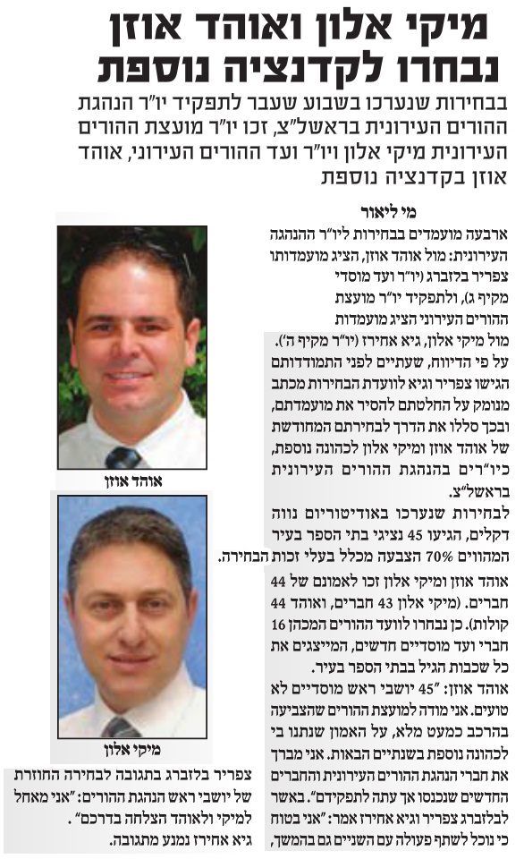 מיקי אלון יו"ר מועצת ההורים העירונית, אוהד אוזן יו"ר ועד ההורים העירוני ראשון לציון בכהונה נוספת