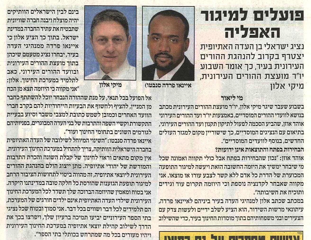 מיקי אלון יו"ר מועצת ההורים,חבר ועדת היגוי ארגון בטרם,חבר הועדה למעמד הילד רוצה נציג ישראלי מבן העדה האתיופית יחד איתו בהנהגת ההורים בעיר.